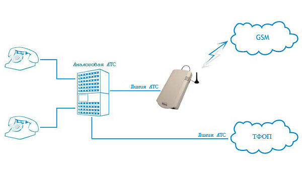 GSM-шлюз — компактное устройство, обеспечивающее перевод звонка с городской линии на сотовый телефон и с обычного стационарного телефона на сотовую связь туда и обратно.