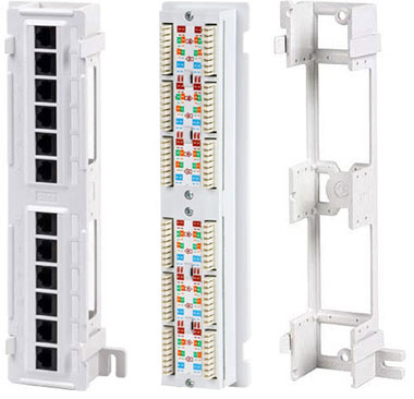 Для осуществления перекоммутации связи оборудования в СКС предназначены блоки разъемов RJ-45 — патч-панели, которые соединены с разъемами KRONE, S110 или им подобным. Каждый разъем на патч-панеле представляет собой отдельный порт и соответствует определенной рабочей розетке, осуществляющий посредством патч-кордов соединение с коммуникационными устройствами.