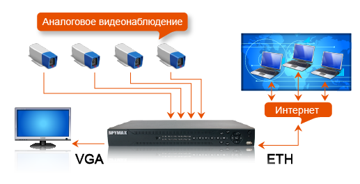 1. Бюджетное — на основе аналоговых ТВ камер с записью событий на регистратор и возможностью просмотра через интернет. В этом случае, потребуется прокладка отдельной кабельной сети на основе коаксиального кабеля и кабеля питания 12в для каждой ТВ камеры.