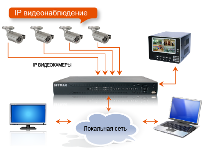 2. Интегрированное — с использованием IP камер видеонаблюдения и существующей локальной сети на основе кабелей UTP, без необходимости прокладки дополнительных кабелей питания. В этом варианте изображения с камер будет лучше, чем в бюджетном варианте, с возможностью просмотра изображения через интернет, в том числе со смартфонов. При этом упростится задача увеличения количества камер при необходимости.